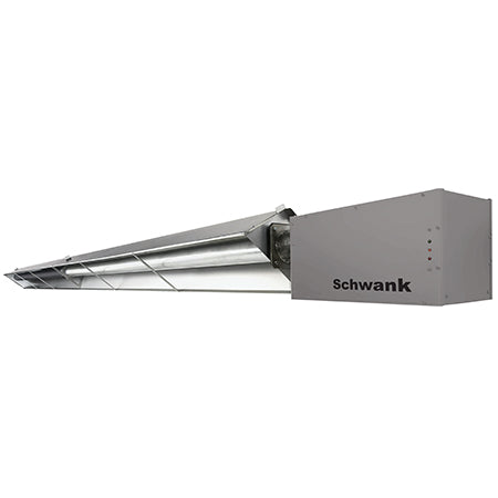 A heavy duty yet efficient radiant tube heater designed for wet conditions, both indoors and outside, the duraSchwank is corrosion-resistant and has a moisture-resistant burner enclosure. It has a stainless steel cabinet and an aluminized steel tube system to ensure durability and corrosion-free operation. Offered in 1 stage and 2 Stage